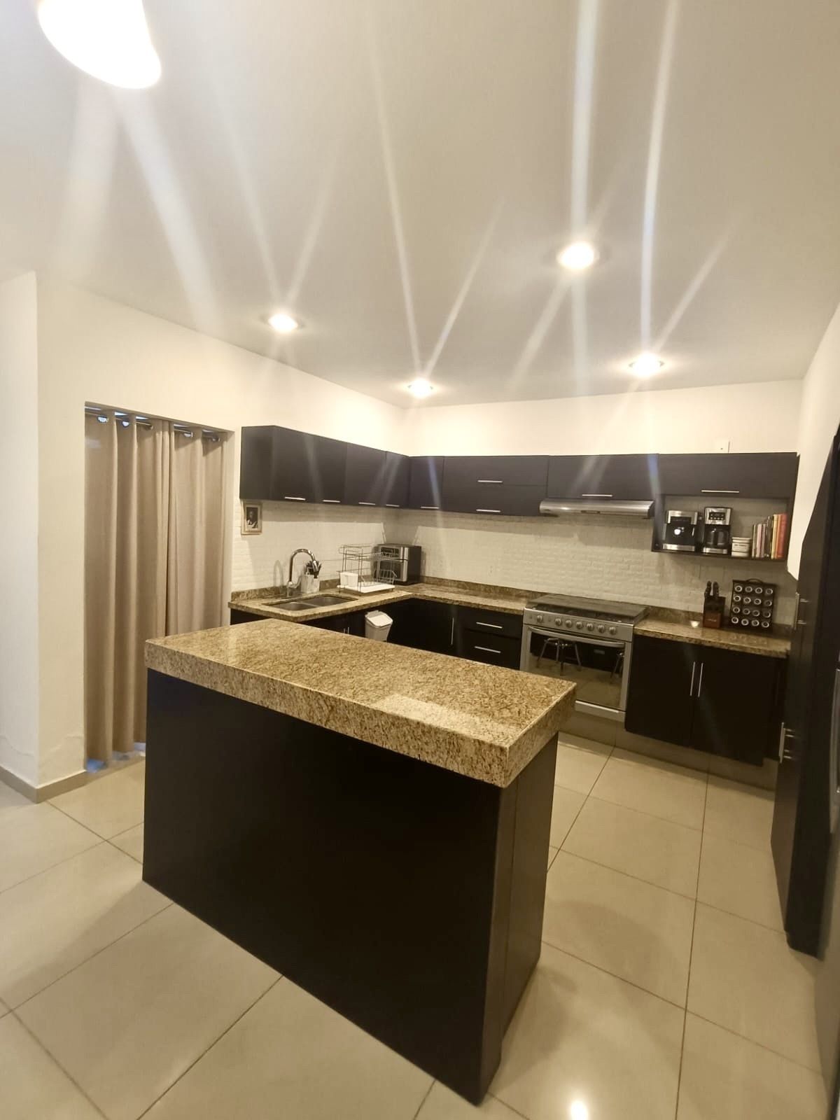 Cocina integral con amplia alacena e isla.